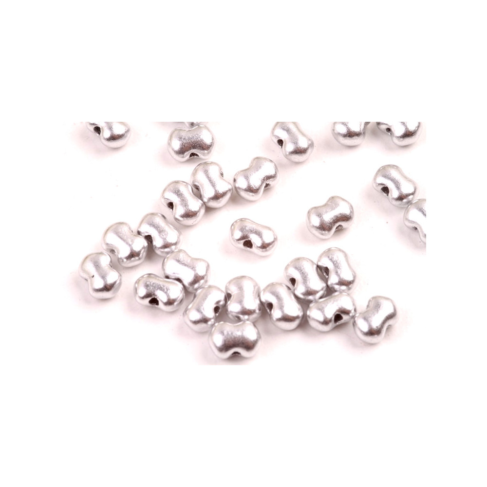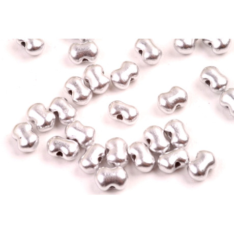 Stříbrný kovový lesk definuje **korálky Matubo Butterfly**. Unikátní tvar o rozměru **4 x 6 mm** přináší do tvorby čistou geometrii a moderní vzhled. Krátké a úderné linie motýlků umožňují skládání do složitých mozaikových vzorů.