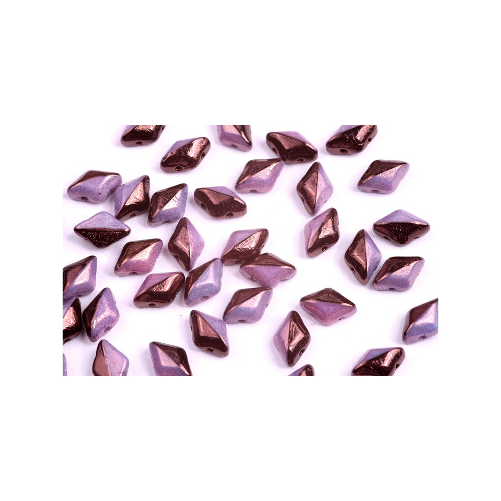 Fialové tóny v kombinaci s hlubokým kovovým leskem vytvářejí fascinující vizuální hru světel na každém šitém šperku. Tyto precizně tvarované dvoudírkové korálky o rozměru 8 x 5 mm jsou ideální pro tvorbu prostorových vzorů, kde jako nezbytný spojovací prvek skvěle poslouží drobný rokajl Preciosa. Díky svému unikátnímu kosočtvercovému tvaru do sebe korálky perfektně zapadají a umožňují vytvářet pevné a elegantní mozaiky.