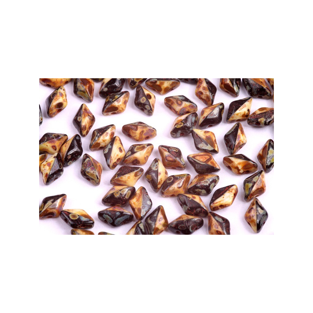 Hnědá a krémová barva v provedení Black/White DARK TRAVERTIN dodávají těmto prvkům organický, téměř kamenný vzhled, který je tolik vyhledávaný v současném designu. Rozměr 8 x 5 mm s dvěma průtahy o velikosti 0,8 mm umožňuje vytvářet složité prostorové konstrukce a geometrické vzory. Tyto skleněné korálky jsou ideální volbou pro ty, kteří hledají eleganci inspirovanou přírodou a autentickými materiály.