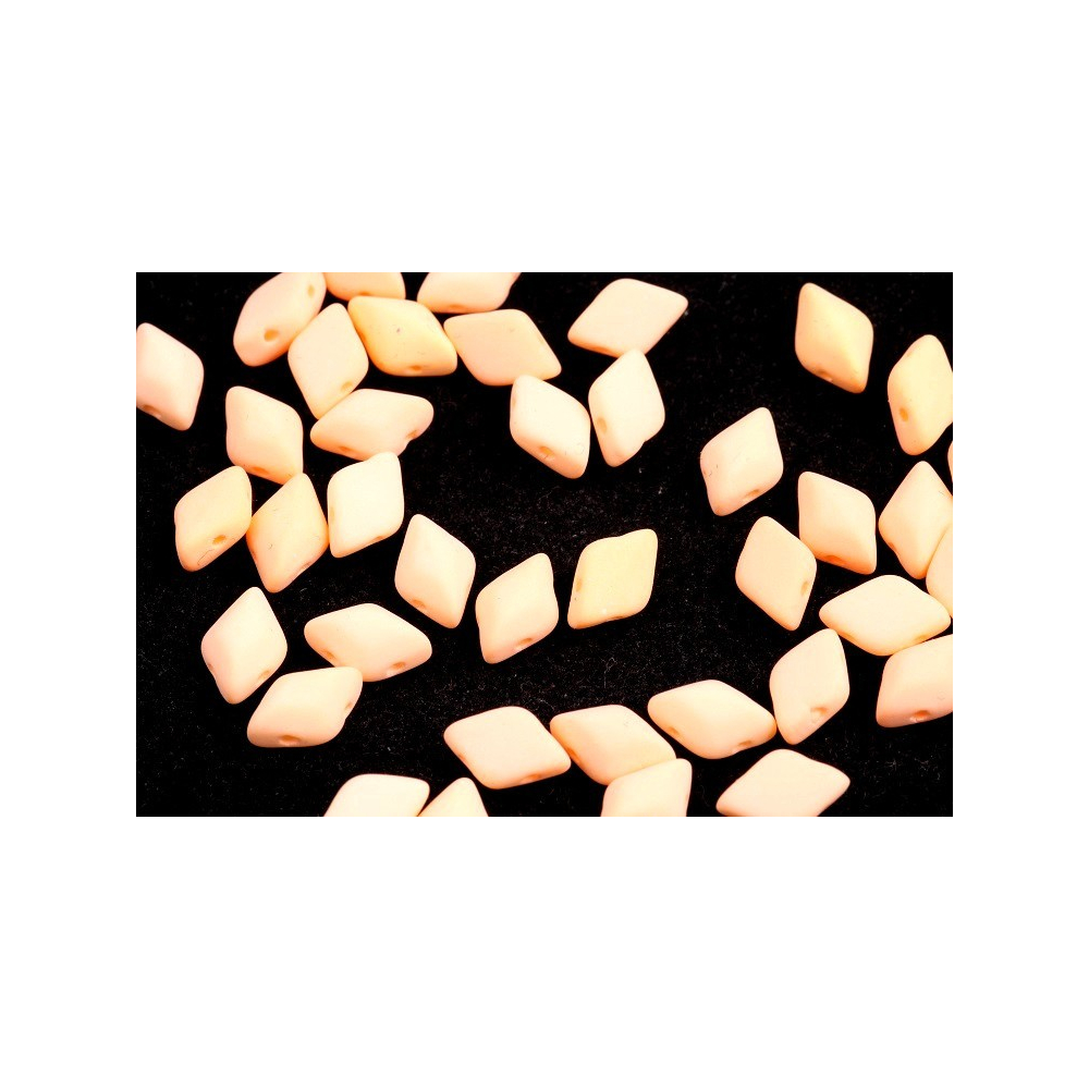 Tvar diamantu o rozměru 8x5 mm se dvěma otvory umožňuje vytvářet složité 3D struktury a bohaté textury, které by s běžnými korálky nebyly proveditelné. Pro harmonický výsledek doporučujeme tento odstín kombinovat se žlutým topazovým tónem, zatímco safírově modrá vytvoří dramatický kontrast a bronzová poslouží jako elegantní neutrální akcent. Jako nezbytný spojovací prvek v propracovaných vzorech skvěle poslouží drobný rokajl Preciosa velikosti 10/0 nebo 11/0.