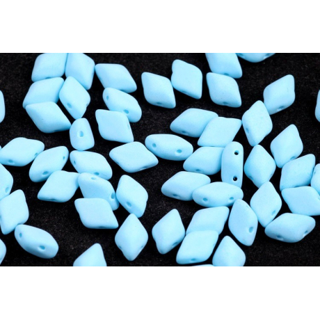Bondeli Mat Sky Blue je specifická matná povrchová úprava, která dává sklu sametový vzhled v odstínu jasné oblohy. Materiálem je prvotřídní sklovina Preciosa Ornela, kterou firma Matubo precizně zpracovává do tohoto unikátního kosočtvercového tvaru s plochou zadní stranou. Pro dosažení profesionálních výsledků doporučujeme jako spojovací prvek v designu zakomponovat rokajl Preciosa, který ideálně vyplní drobné mezery mezi jednotlivými dílky ve složitějších GemDuo vzorech.