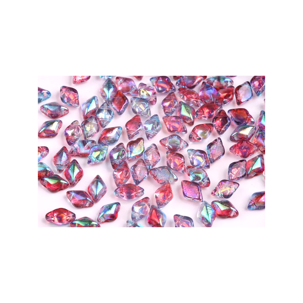 Tradice jabloneckého sklářství a preciznost moderní výroby se spojují v těchto unikátních prvcích z rodinné huti Matubo. Tyto dvoudírkové korálky Matubo GemDuo o rozměrech 8x5 mm v podmanivém odstínu Summer Rainbow Dark Violet (kód 00030/48113) jsou vyrobeny z vysoce kvalitního českého skla, které zaručuje dokonalou tvarovou stálost a čistotu průtahů. Díky svému kosočtvercovému tvaru s plochou zadní stranou jsou ideální pro vytváření bohatých plastických vzorů a v kombinaci s korálky Matubo SuperDuo tvoří harmonický základ pro složité hvězdicové a květinové motivy. Pro dosažení luxusního vzhledu doporučujeme tento duhový povrch kombinovat s kontrastním černým jetem nebo jemnými akcenty v barvě zlata, které zvýrazní jeho měňavé fialové odlesky.
