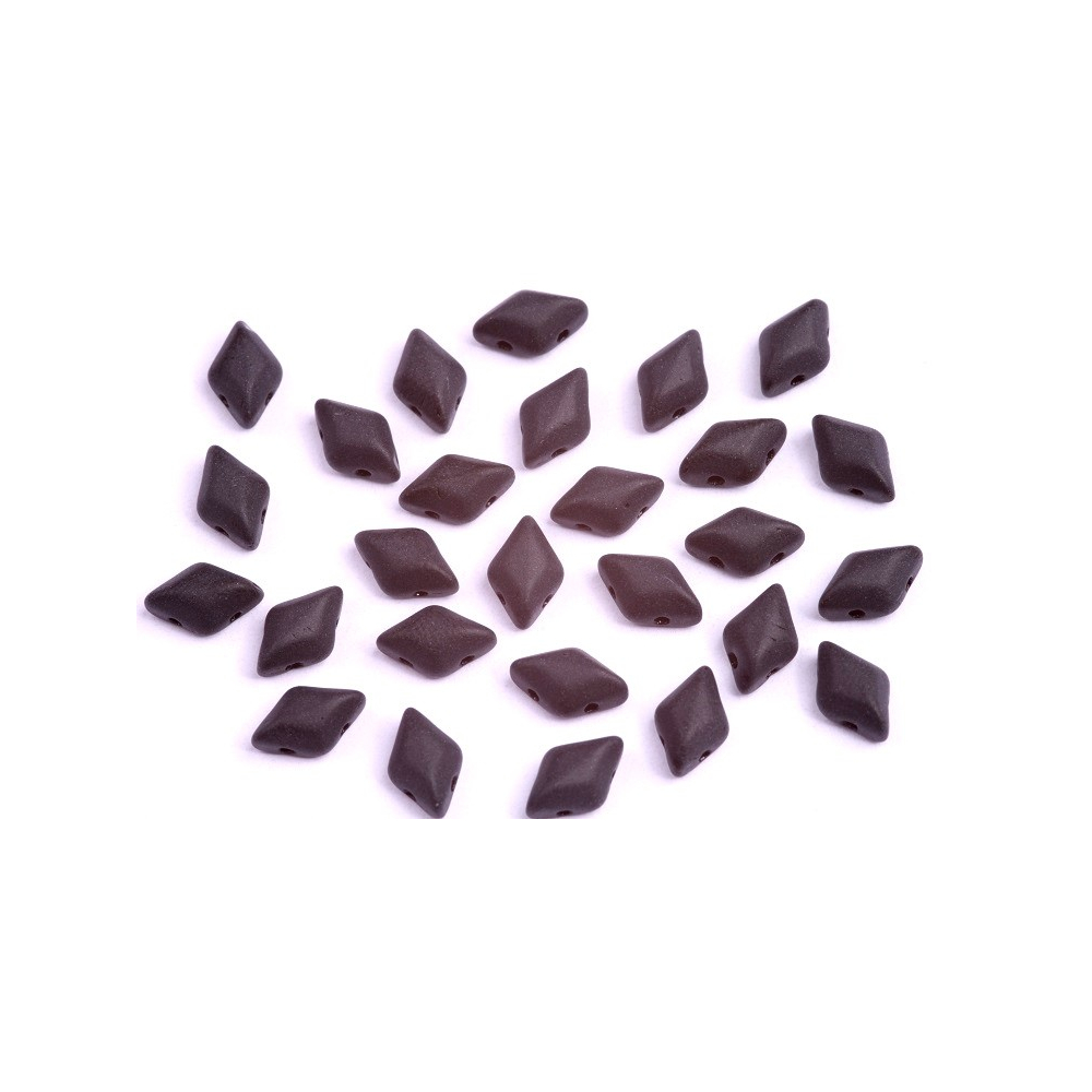 Sametově matný povrch v hlubokém hnědém odstínu evokuje luxusní eleganci a dodává vašemu tvoření neopakovatelný charakter. Každý kosočtverec o rozměru 8x5 mm přesně zapadá do geometrické mozaiky, kterou nejsnáze vytvoříte s korálkovací jehlou velikosti 10-11. Tento unikátní tvar umožňuje vytvářet plastické struktury, které se na světle nelesknou, ale pohlcují ho do své hebké textury, čímž vytvářejí sofistikovaný vizuální dojem.