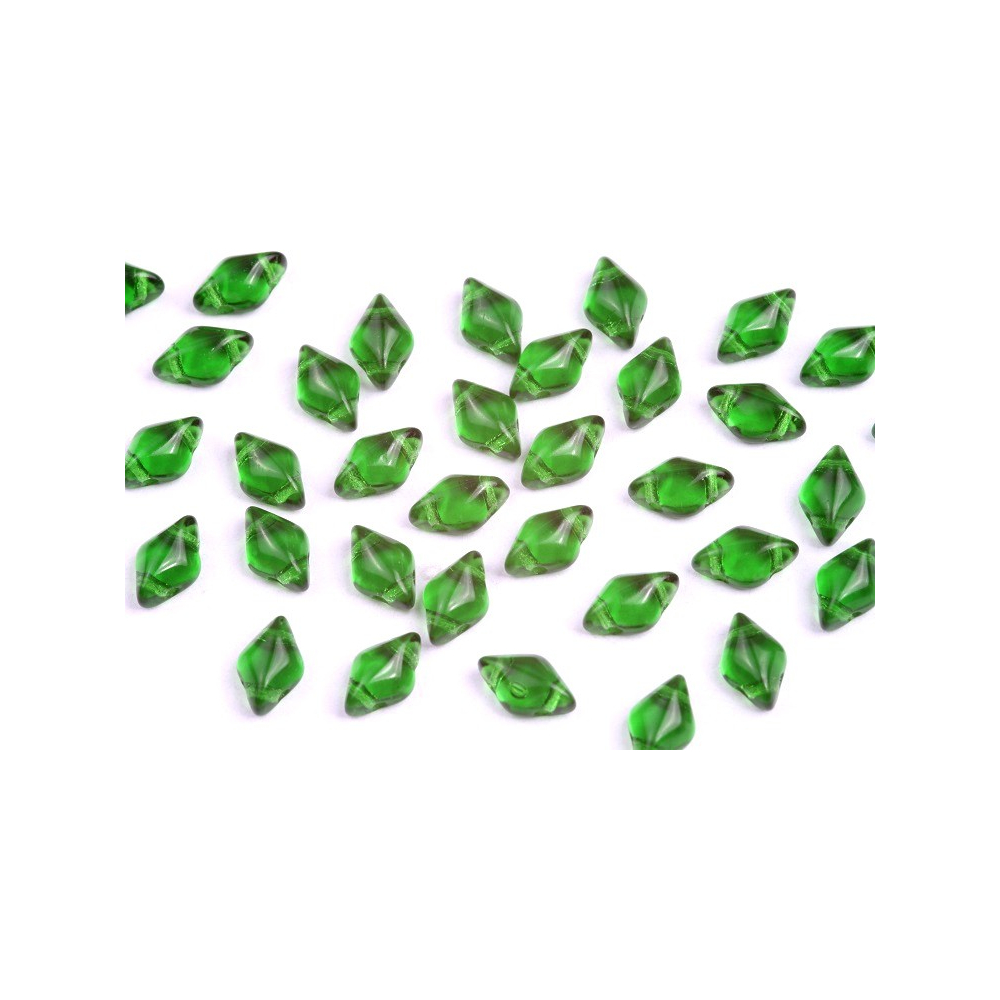 Sytě zelený transparentní povrch a unikátní kosočtvercový tvar s rozměry 8x5 mm definují tyto prémiové korálky z produkce české rodinné firmy Matubo. Díky technologii lisování z kvalitní české skloviny vykazují tyto komponenty naprostou tvarovou stálost a hladké hrany, což je klíčové pro profesionální vzhled vašich šperků. Dva paralelní otvory o průměru 1 mm jsou umístěny s naprostou přesností, což eliminuje riziko praskání nitě při náročném šití.