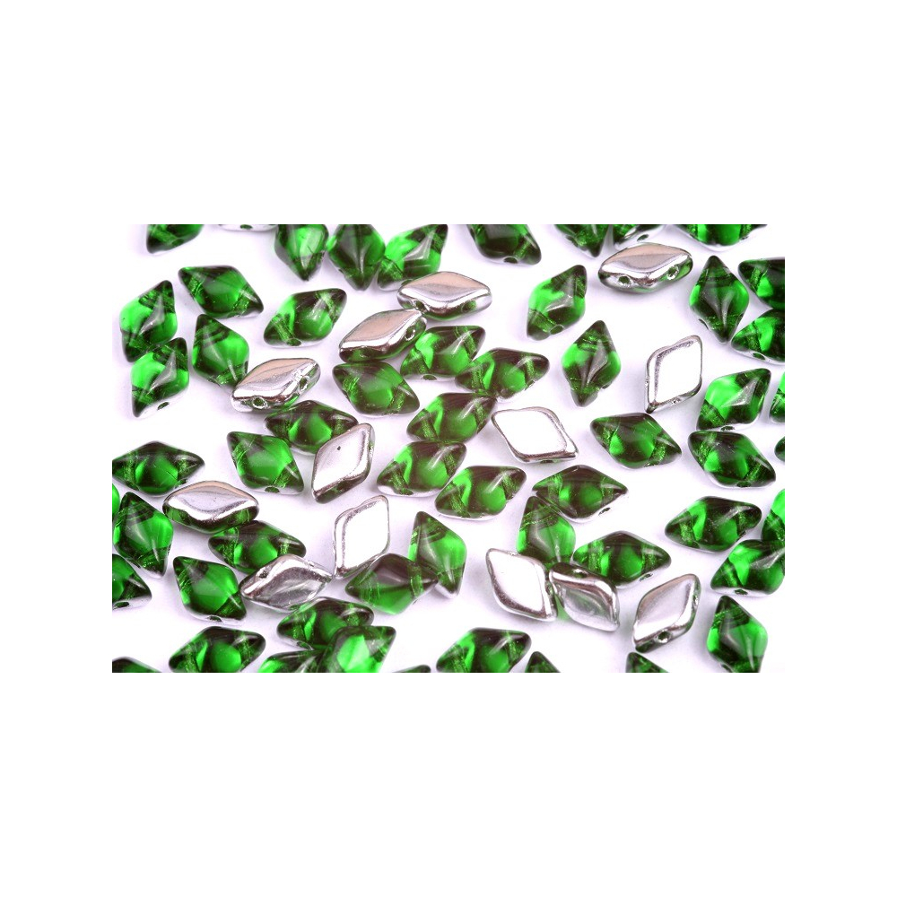 Emeraldově zelené odlesky připomínající hluboký les se v těchto korálcích snoubí s chladivým stříbrným povrchem, čímž vytvářejí dramatický vizuální efekt pro vaše šperky. Tyto skleněné korálky Matubo GemDuo ve tvaru kosočtverce o velikosti 8x5 mm nabízejí díky svému unikátnímu plochému profilu a dvěma otvorům nekonečné možnosti pro prostorovou tvorbu. Barva Emerald Labrador s kódem 50720/27002 vyniká svou hloubkou, kdy jedna strana korálku září metalickým leskem, zatímco druhá odhaluje čistou krásu transparentního skla. Pro výrazný kontrast zkombinujte tyto smaragdové tóny s kobaltově modrou, nebo vsaďte na harmonickou šedou či bílou křídovou pro moderní, sofistikovaný vzhled.