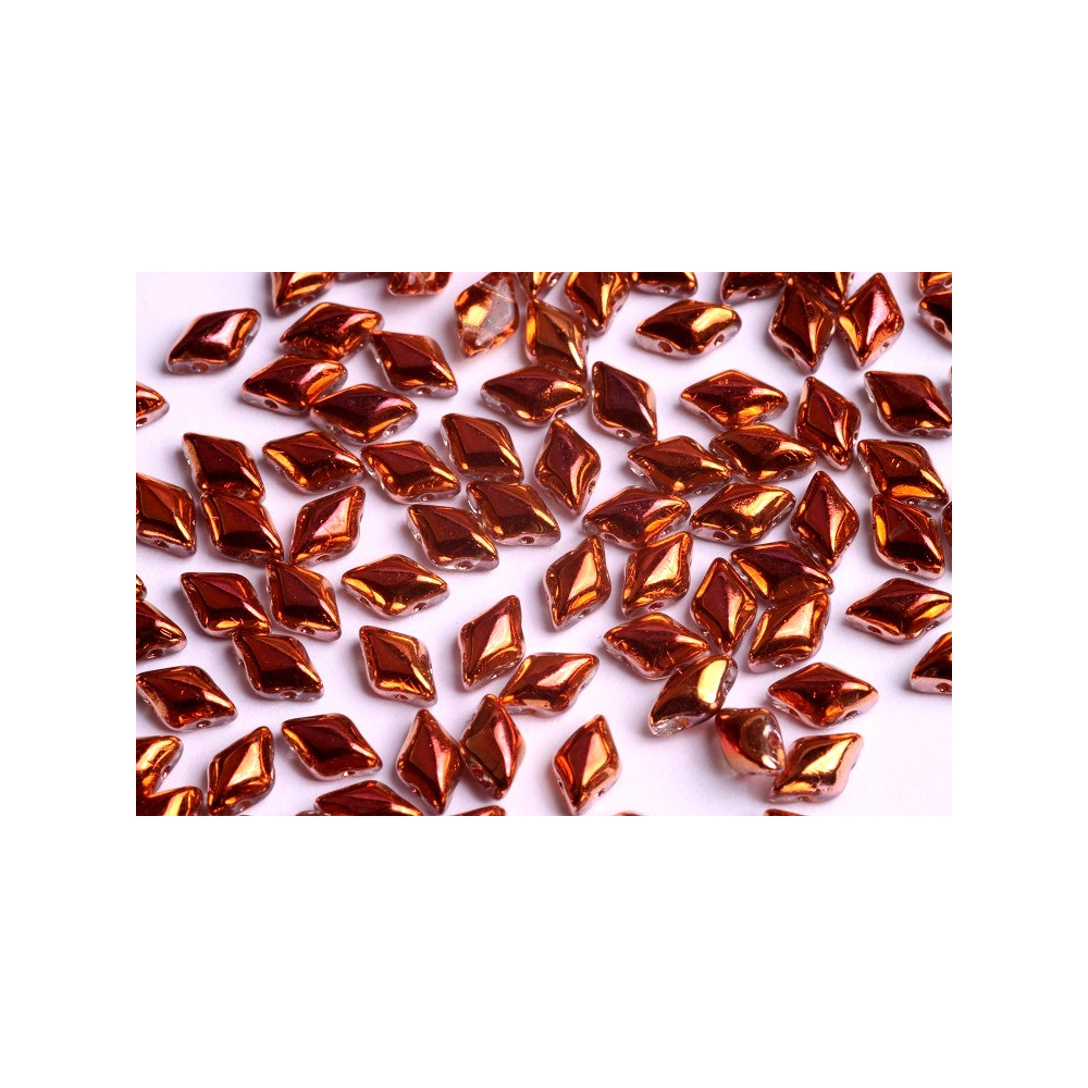 Teplé měděné odlesky a metalické tóny dominují moderním šperkařským trendům, které se zaměřují na geometrickou přesnost a hru se světlem. Matubo GemDuo v podmanivé barvě Crystal Sunset představují luxusní materiál pro tvorbu prostorových doplňků, přičemž jejich precizní kosočtvercový tvar umožňuje vytvářet dokonale symetrické vzory. Pro jemné detaily a plynulé přechody v designu doporučujeme tyto korálky doplnit menší variantou Matubo MiniGemDuo, která udrží jednotný styl vašeho díla.