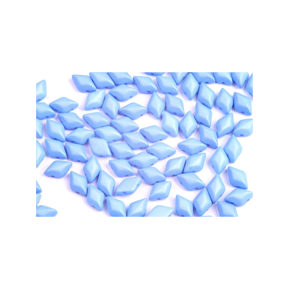 Design šperku můžete postavit na kontrastu nebo harmonii, přičemž tato jemná modrá krásně ladí s odstíny jako akvamarín nebo čistý krystal. Pro odvážnější projekty zkuste kombinovat Matubo GemDuo s populárními Matubo SuperDuo v hvězdicových vzorech, kde kosočtverce vytvoří dominantní středový motiv. Pokud hledáte výrazný kontrast, doplňte modrou barvu o sytý oranžový hyacint.