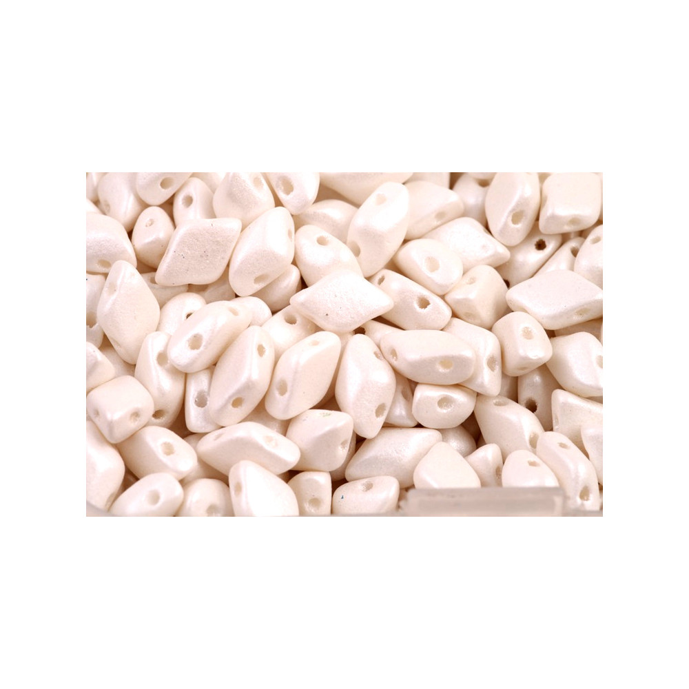 Perleťový lesk čisté bílé barvy evokuje eleganci vzácných mořských perel a dodává vašim autorským projektům nádech luxusu i nadčasové jemnosti. Tyto dvoudírkové korálky Matubo GemDuo ve tvaru kosočtverce o velikosti 8x5 mm jsou vyrobeny z prvotřídního českého skla a díky svému plochému spodku perfektně přiléhají k podkladu, což oceníte zejména u náročných prostorových vzorů. Precizní geometrie a dva paralelní otvory o průměru 1 mm otevírají nekonečné možnosti v kreativních technikách, kde například voskované perličky vytvoří v kombinaci s ostrými liniemi GemDuo úchvatný vizuální kontrast v náušnicích i náramcích.