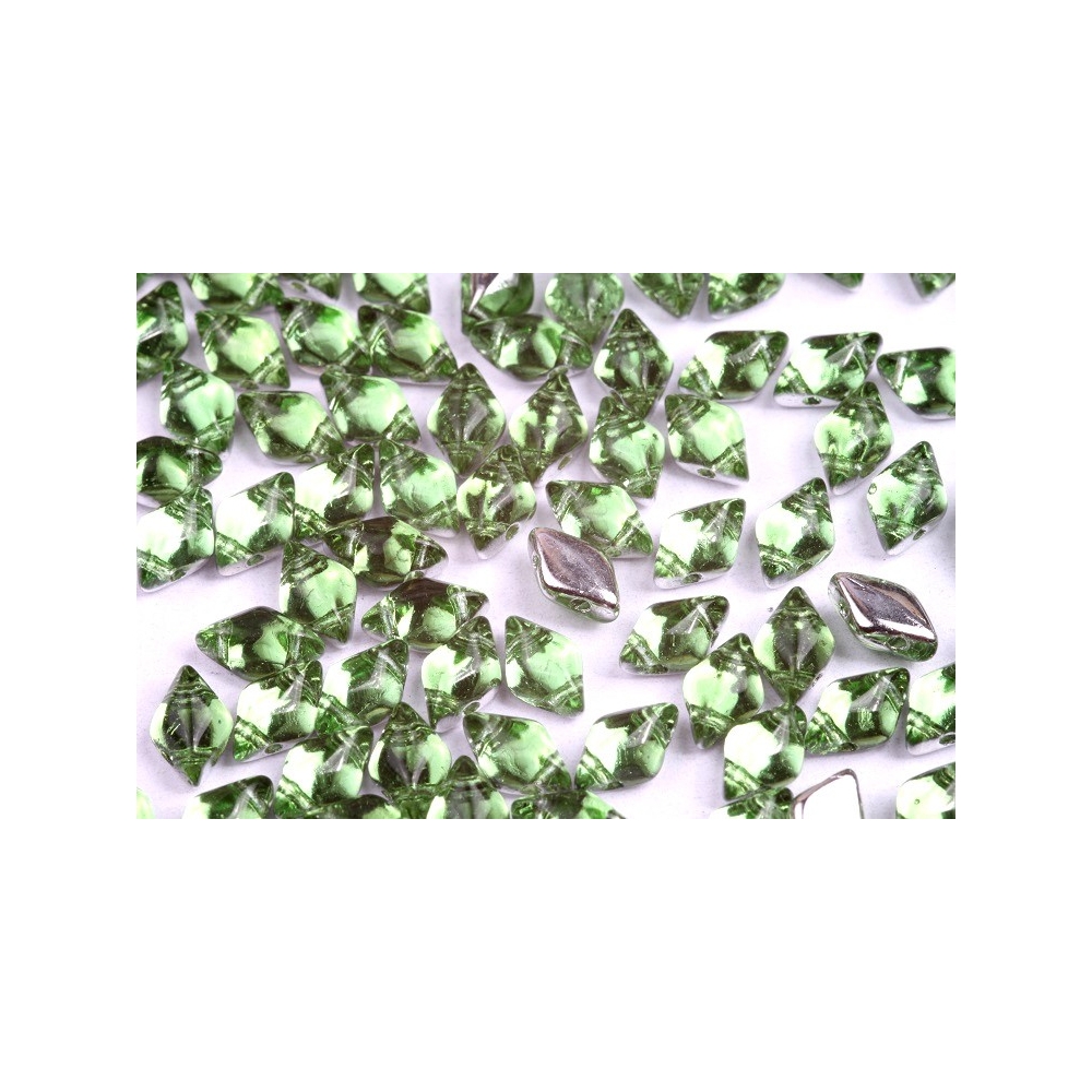 Zelená barva v úpravě Backlit Ice dodává těmto českým skleněným korálkům neopakovatelný charakter, který vynikne zejména v náročných designech. Pokud hledáte způsob, jak své tvorbě dodat další rozměr a plasticitu, Matubo MiniGemDuo poslouží jako skvělý doplňkový prvek pro detailní stínování a jemné olemování větších tvarů.