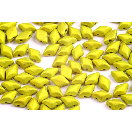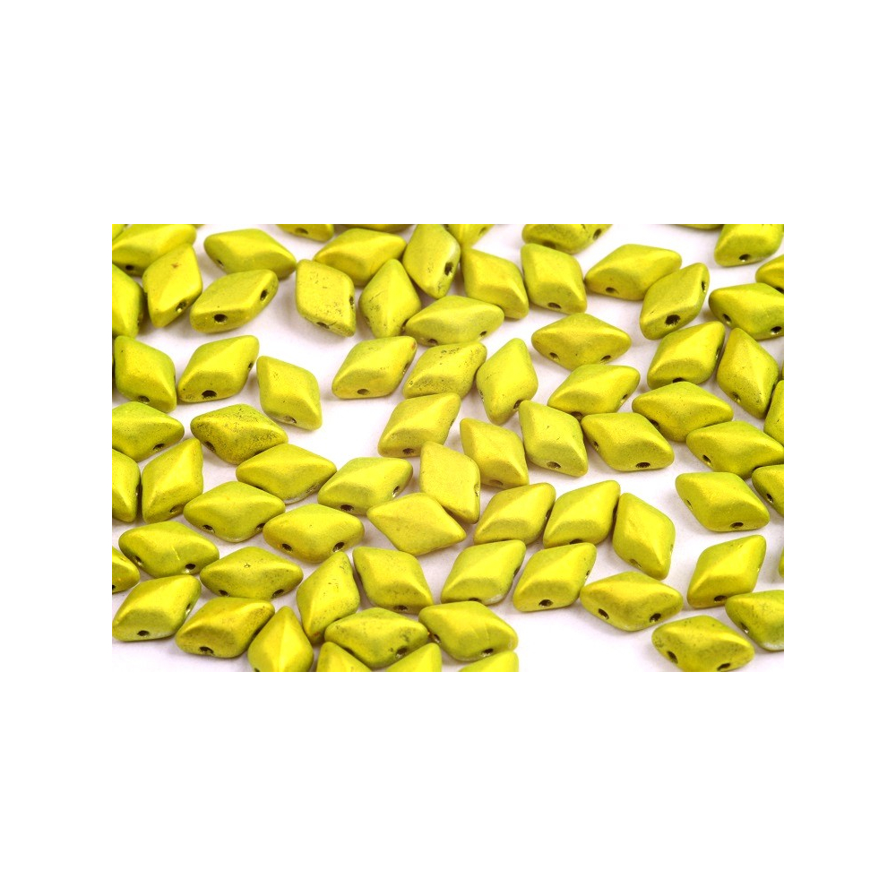Matubo GemDuo v barvě electric green s kódem 23980/24310 představují špičku v kategorii dvoudírkových korálků. Tyto české skleněné korálky vyrobené ze skloviny Preciosa Ornela nabízí unikátní geometrický tvar kosočtverce s plochou spodní stranou a vystouplým středem. Skvěle se doplňují s menší variantou Matubo MiniGemDuo, což umožňuje vytvářet bohaté plastické textury a přechody.