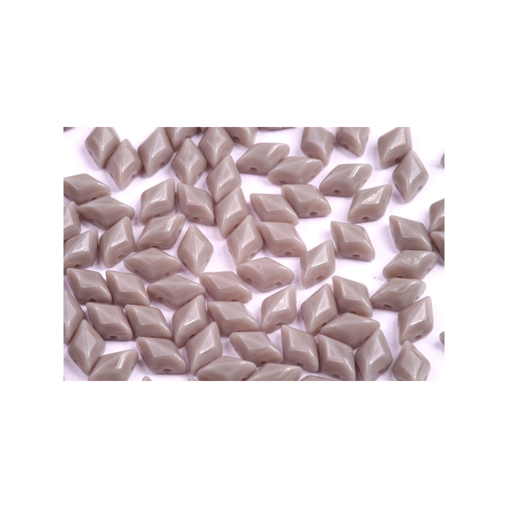 Matubo GemDuo v elegantním a sytém odstínu šedá (kód barvy 43020) zaujmou svým specifickým tvarem broušeného kosočtverce s plochou spodní stranou a vystouplým lícem. Tento unikátní 3D tvar s rozměry 8x5 mm umožňuje korálkům v ploše dokonale zapadnout do sebe, čímž vytvářejí souvislou texturu připomínající dračí šupiny nebo luxusní geometrickou mozaiku. Povrchová úprava opaque dodává materiálu neprůhlednou hloubku a jemný lesk.
