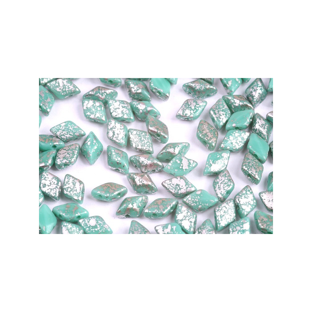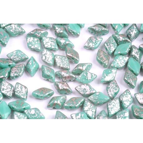 MATUBO GEMDUO 8x5 mm SILVER SPLASH TURQUOISE GREEN 63130/15481