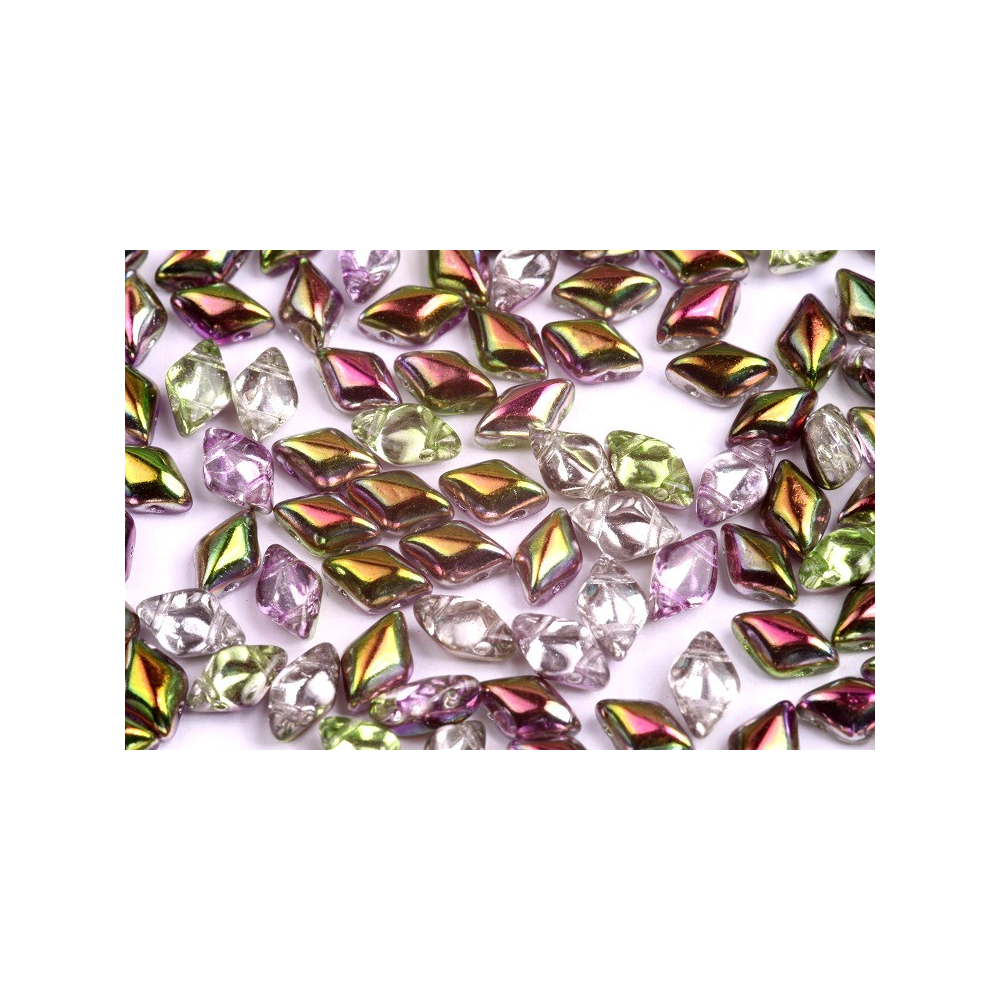 Materiál pochází z tradiční české produkce a tyto korálky Matubo ze skloviny Preciosa Ornela se vyznačují mimořádnou odolností povrchové úpravy. Povrch v odstínu Magic Violet Green vytváří fascinující barevné přechody, které se mění podle dopadu světla od temně fialové až po smaragdově zelenou. Kombinace s Matubo SuperDuo je velmi oblíbená v hvězdicových a květinových vzorech, kde GemDuo tvoří dominantní středový prvek.