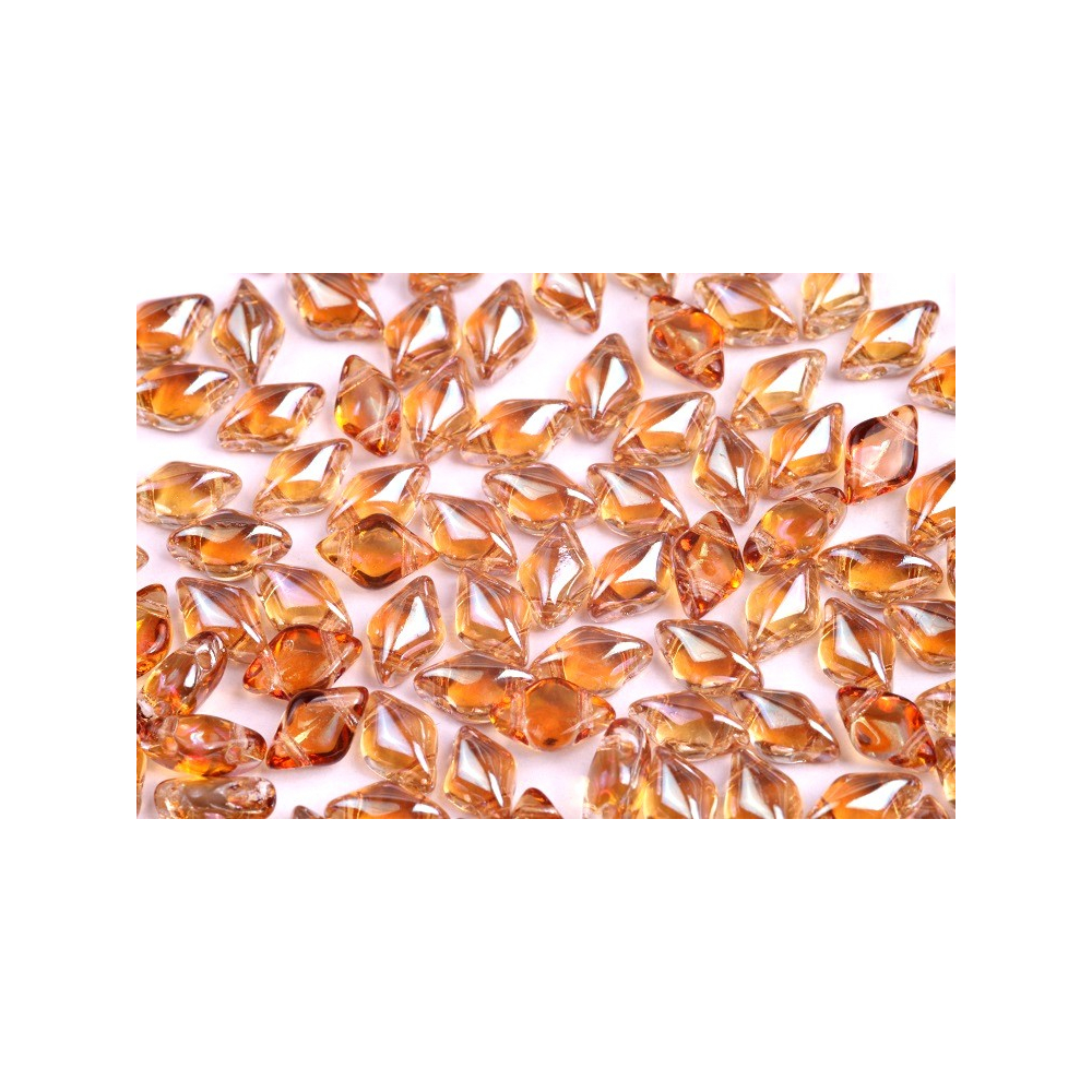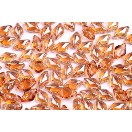 Zlatavé odlesky a hřejivý jantarový nádech jsou základem moderních šperkařských designů, které sází na hloubku a hru světla. Tyto precizně vybroušené dvoudírkové korálky v odstínu Crystal Celsian představují ideální volbu pro náročné autory, kteří hledají geometrickou přesnost v kombinaci s luxusním vzhledem českého skla. Díky svému unikátnímu tvaru diamantu s plochou spodní stranou a klenutým vrcholem do sebe jednotlivé dílky perfektně zapadají a vytvářejí souvislé, architektonicky vyvážené plochy.