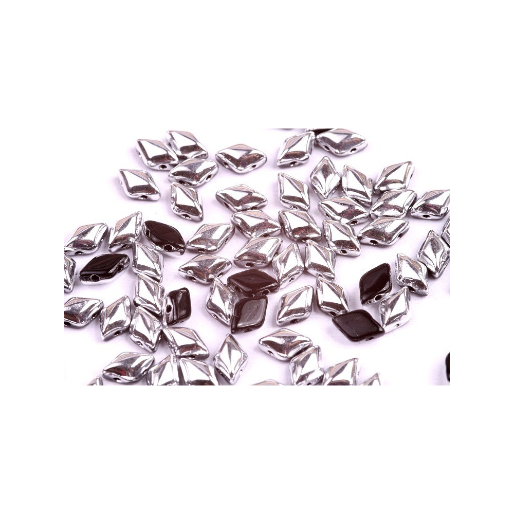 Diamantový tvar korálků otevírá nekonečné možnosti pro tvorbu hvězdicových motivů nebo květinových vzorů v kombinaci s Matubo SuperDuo. Materiál sklo s metalickým finišem intenzivně odráží světlo a dodává bižuterii profesionální vzhled. Pro výrazný kontrast zkombunujte tyto stříbrné prvky s korálky v barvě červený siam, čímž vytvoříte dramatický večerní doplněk.
