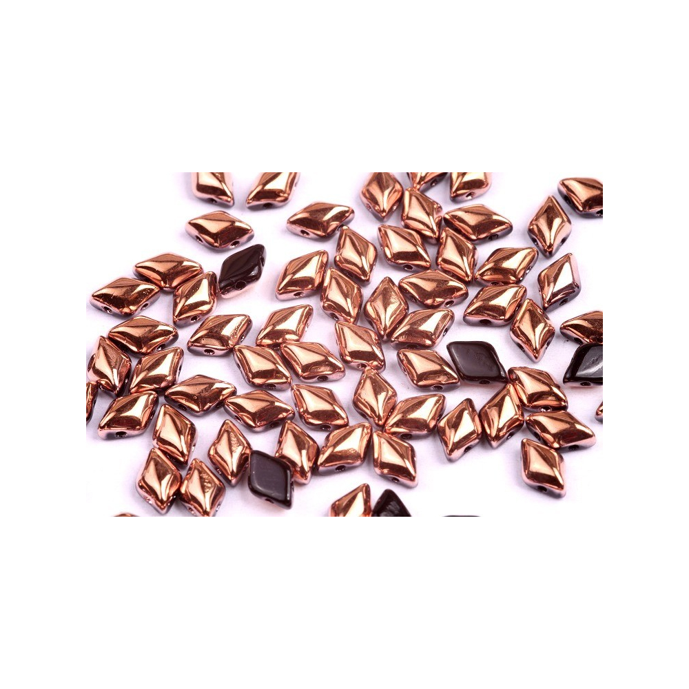 Rozměry 8x5 mm a precizně kalibrované dva otvory o průměru 1 mm definují tyto skleněné korálky jako nepostradatelný prvek pro náročný beadweaving. Díky unikátnímu kosočtvercovému tvaru s vyvýšeným středem do sebe jednotlivé kusy perfektně zapadají, což umožňuje vytvářet pevné a geometricky přesné struktury. Povrchová úprava Jet Capri Gold na černém základu vytváří hluboký kovový odlesk v tónech bronzu a růžového zlata, který dodá vašim širým šperkům luxusní nádech a profesionální vzhled.