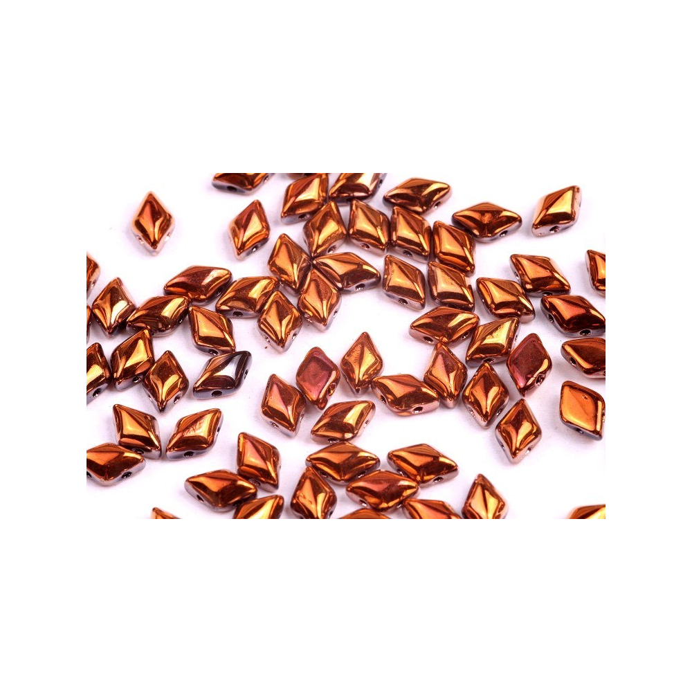 Hřejivé odlesky zapadajícího slunce se zrcadlí v každé plošce těchto precizně broušených kosočtverců, které vdechnou vašim projektům nádech luxusu. Dvoudírkové korálky Matubo Gemduo v podmanivém odstínu Jet Full Capri Gold vynikají svou dokonalou geometrií a intenzivním kovovým leskem, který okamžitě upoutá pozornost. Jejich plochá zadní strana zajišťuje, že hotový šperk perfektně přiléhá k pokožce, zatímco vystouplý střed vytváří fascinující 3D efekt při každém pohybu.