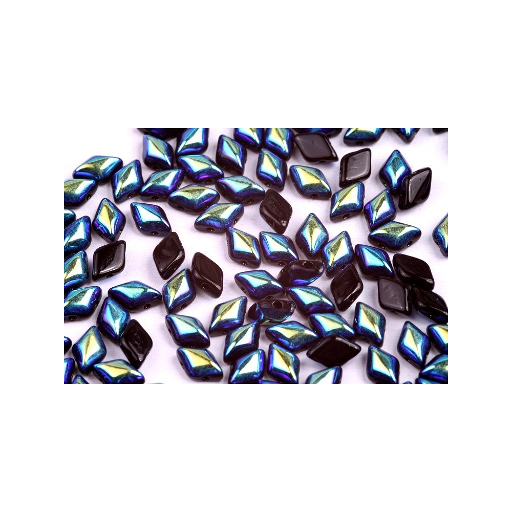 Hluboká černá barva s tajemnými odlesky polární záře ožívá v každém pohybu šperku vytvořeného z těchto unikátních kosočtverců. MATUBO GEMDUO č.342 v úpravě Jet AB představují vrchol české sklářské tradice, kde precizní brus dává vyniknout intenzivnímu kontrastu mezi temným základem a barevným měňavým povrchem. Tyto dvoudírkové korálky jsou navrženy tak, aby k sobě dokonale přiléhaly a vytvářely souvislé, texturované plochy připomínající dračí šupiny nebo luxusní mozaiky.