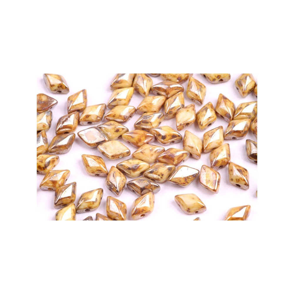 Krémově béžový odstín se specifickým mramorováním barvy Chalk Rembrandt (kód 03000/43500) definuje tyto precizní skleněné korálky Matubo GemDuo. Rozměry 8x5 mm jsou ideální pro vytváření pevných a souměrných struktur v náročných designech. Díky dvěma paralelním otvorům s průtahem 1 mm umožňují bezproblémové provlékání a stabilitu celého šperku, což oceníte zejména u plochých vzorů.