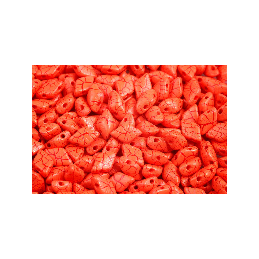 Precizní plochý tvar kosočtverce o rozměru 8x5 mm se dvěma otvory otevírá dveře k tvorbě prostorových vzorů a geometricky přesných mandal. Oranžovo-červený skleněný povrch s patinou tvoří harmonický celek s krémovými nebo slonovinovými odstíny, zatímco pro výrazný kontrast jej zkombinujte s černým jetem. Při navrhování květinových a hvězdicových motivů se přímo nabízí spojit tyto korálky a Matubo SuperDuo, díky čemuž dosáhnete profesionální plasticity a vysoké stability celého šitého šperku.