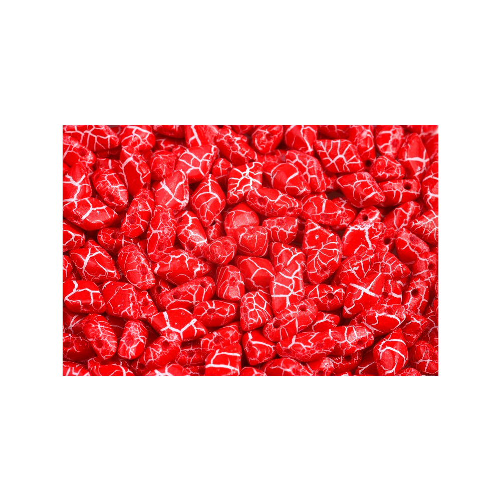 Povrchová úprava Ionic Red/White s kódem 02010-24610 dodává šperkům organický, mramorovaný vzhled, který skvěle doplní drobný rokajl Preciosa velikosti 10/0 v roli jemného spojovacího prvku. Unikátní červená barva s bílým žilkováním vynikne zejména v technikách jako peyote stitch nebo při vyšívání na filc. Tato výrazná barevná varianta vytváří dramatický kontrast, pokud ji zkombinujete s odstínem černý jet, zatímco v kombinaci s šedou působí velmi harmonicky a zajímavý neutrální akcent jí dodá červený siam. Matubo GemDuo jsou vyrobeny z kvalitního českého skla, což zaručuje barevnou stálost a vysoký lesk po celou dobu nošení šperku.
