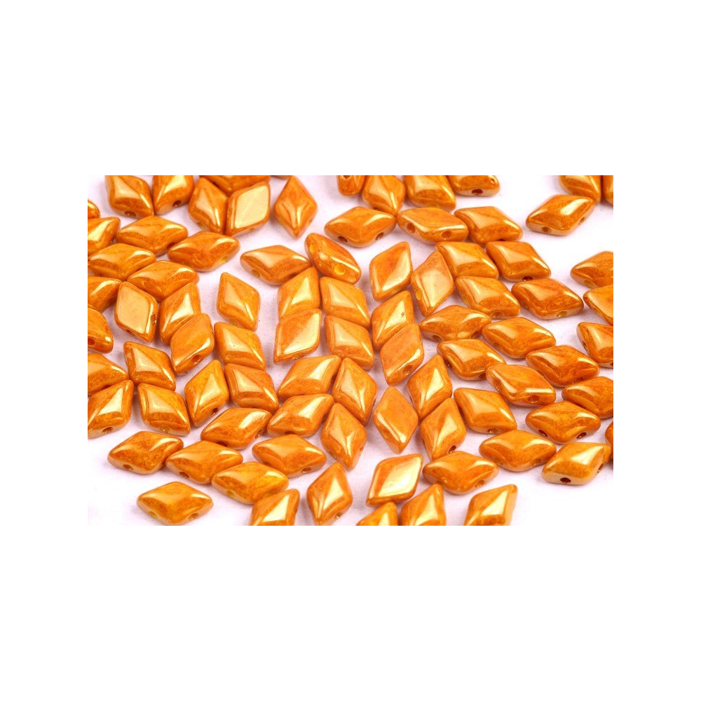 Dvoudírkové korálky o rozměru 8x5 mm disponují precizním tvarem kosočtverce a dokonale plochou spodní stranou, díky čemuž skvěle přiléhají k pokožce i k ostatním komponentům. Pro dosažení maximální plasticity a detailních textur se výborně kombinují s menší variantou Matubo MiniGemDuo, což umožňuje designérům vytvářet plynulé přechody a složité reliéfní struktury. Povrchová úprava limon red luster dodává korálkům hloubku, která se mění s dopadajícím úhlem světla.