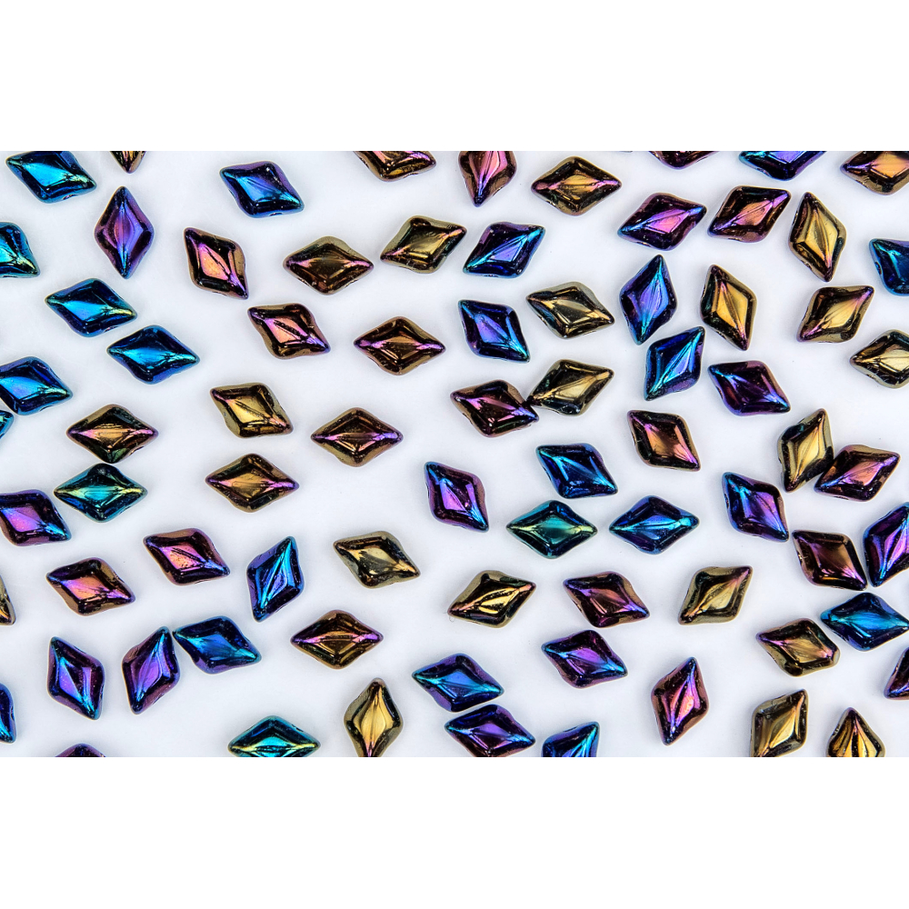 Iridiscenční povrch s hlubokými kovovými odlesky činí z tohoto materiálu naprostý unikát pro tvorbu luxusních doplňků. Tyto české skleněné korálky s názvem MATUBO GEMDUO v barvě Jet White Iris o velikosti 8x5 mm nabízejí díky svému plochému kosočtvercovému tvaru nekonečné možnosti v geometrickém designu. V elegantních náhrdelnících je můžete skvěle kombinovat s materiálem Matubo SuperDuo pro vytvoření bohatých struktur a hvězdicových vzorů. Pro dosažení harmonického vzhledu zkuste v rámci jednoho projektu kombinaci s šedými tóny, zatímco safírově modrá vytvoří dramatický a odvážný kontrast.