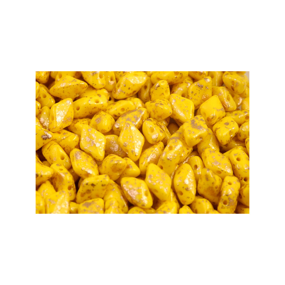 Limonově žluté odstíny v kombinaci s kovovými odlesky momentálně dominují světovým přehlídkám autorské bižuterie a přinášejí do tvorby svěží energii. MATUBO GEMDUO č.467 v provedení GOLD SPLASH LIMON představuje ideální základ pro odvážné letní doplňky i sofistikované večerní kousky. Tyto dvoudírkové korálky o rozměru 8x5 mm vynikají svou precizní geometrií, která umožňuje dokonalé skládání do mozaikových vzorů a plastických struktur.