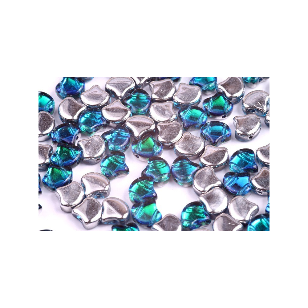 Objevte jedinečný design s korálky Matubo Ginko v podmanivém odstínu Backlit Aquasol. Tyto dvoudírkové korálky o velikosti 7,5 x 7,5 mm vynikají svým tvarem inspirovaným listem jinanu, který umožňuje vytvářet fascinující mozaikové vzory a elegantní organické struktury. Jsou vyrobeny z prvotřídní skloviny Preciosa Ornela v České republice, což zaručuje jejich vysokou kvalitu, barevnou stálost a přesné tvarování.