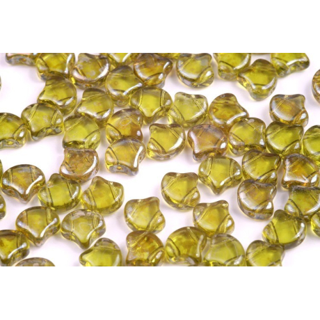 Skleněné mačkané korálky Ginko 7,5 x 7,5 mm OLIVINE REMBRANDT 50230/43500