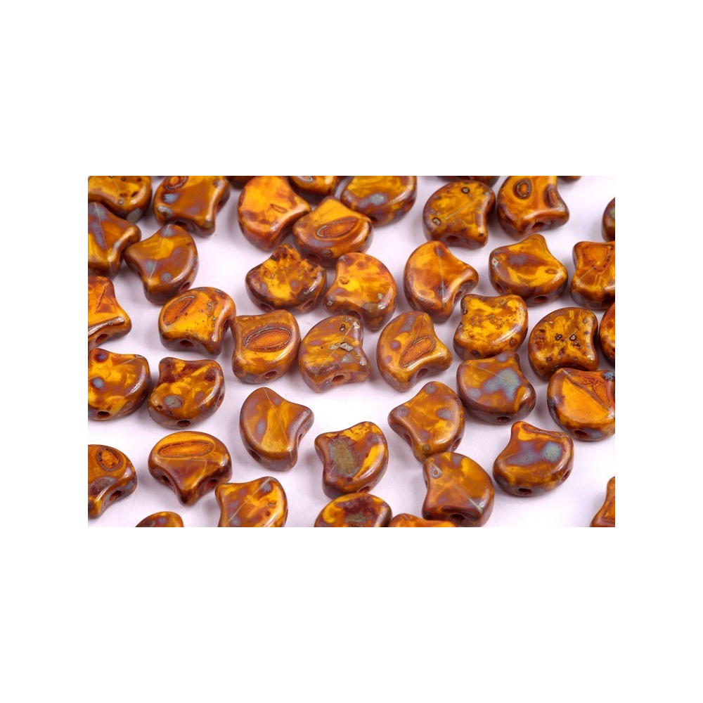 Matubo Ginko v unikátním odstínu Limon Travertin Dark představují špičku v designu moderních dvoudírkových korálků. Díky svému specifickému tvaru, který věrně kopíruje list jinanu, a preciznímu zpracování jsou tyto skleněné korálky ideální volbou pro náročné tvůrce šperků. Velikost 7,5 x 7,5 mm je navržena tak, aby do sebe jednotlivé kusy při šití dokonale zapadaly a vytvářely plynulé, esteticky působivé organické struktury.