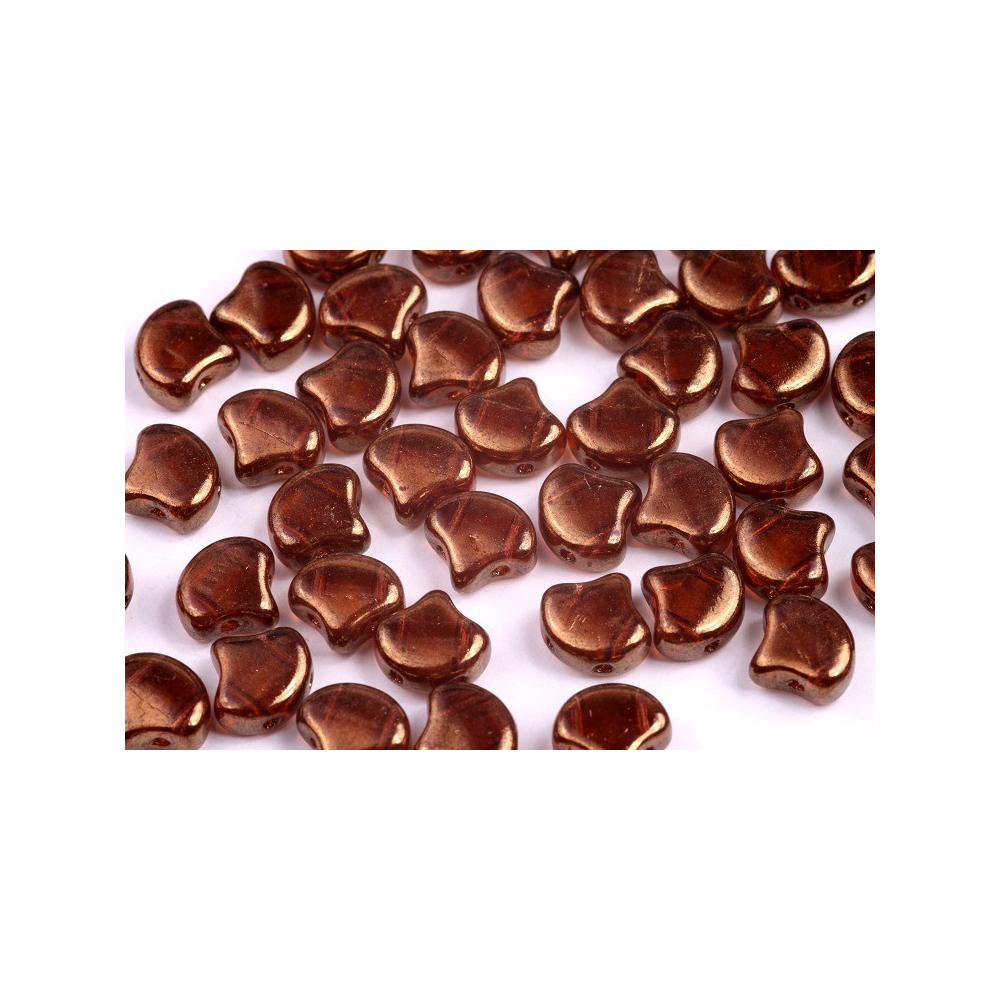 Povrchová úprava s fialovým leskem na tmavě topazovém podkladu dodává korálkům luxusní kovový nádech, který se skvěle hodí pro šitý šperk i tvorbu originální bižuterie. Korálky Matubo Ginko jsou navrženy tak, aby do sebe perfektně zapadaly a vytvářely působivé mozaikové vzory nebo elegantní květinové motivy. Jejich symetrický tvar a dvě dírky otevírají nekonečné možnosti pro kombinování s dalšími tvary jako Superduo nebo Gemduo.