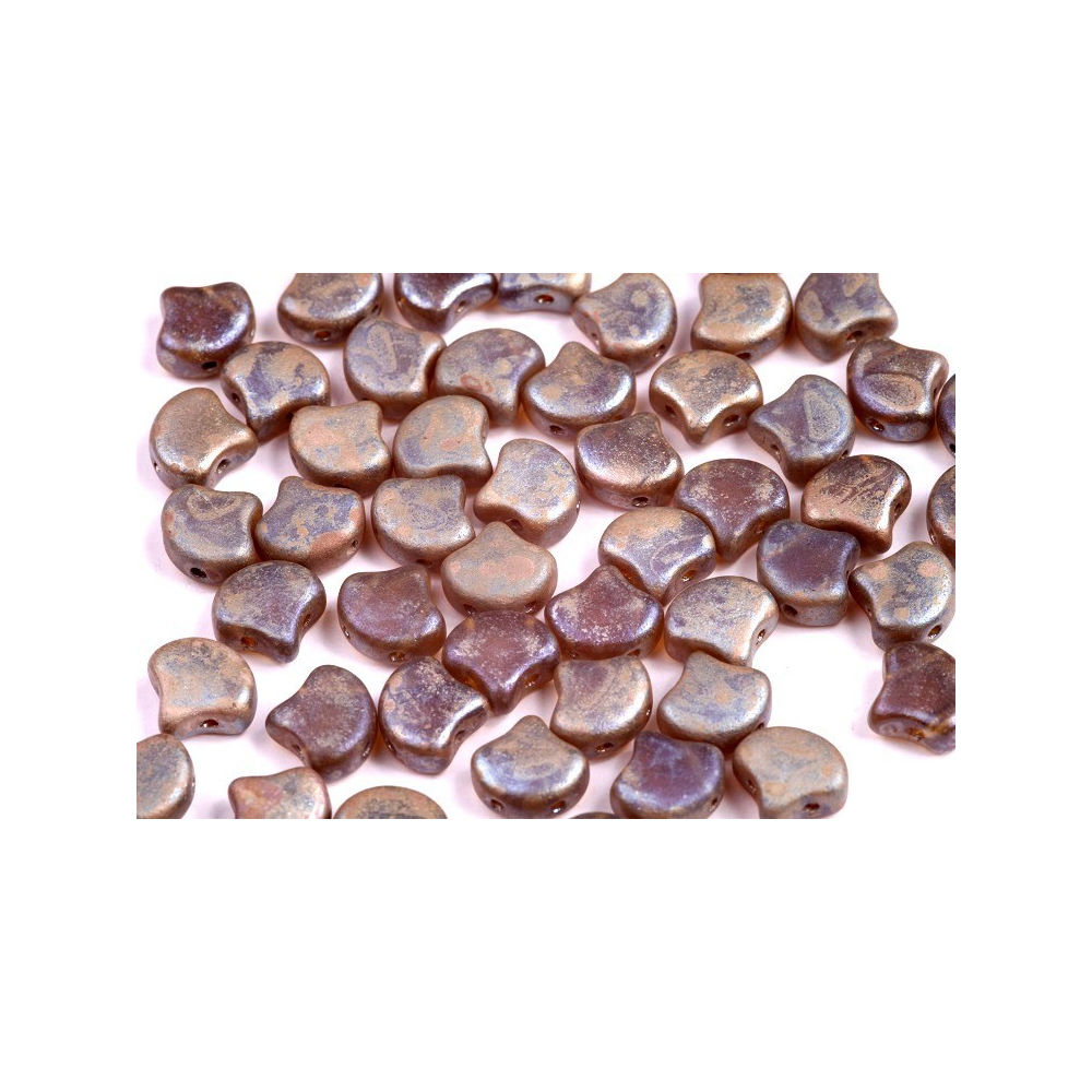 Originální korálky Matubo Ginko představují unikátní tvar inspirovaný listem jinanu dvoulaločného. Tyto precizní dvoudírkové korálky o velikosti cca 7,5 x 7,5 mm jsou díky svému plochému profilu a dvěma otvorům ideální pro vytváření stabilních a pevných struktur v náročných projektech. Skvěle se doplňují s dalšími tvary jako Superduo nebo klasickým rokajlem.