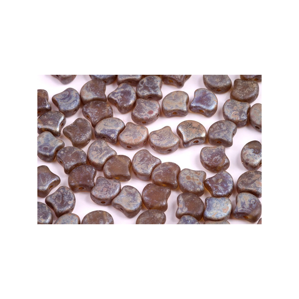 Díky systému dvou dírek jsou tyto korálky nepostradatelné pro pokročilé techniky šitého šperku. Umožňují snadné skládání do vějířků, květinových motivů nebo pevných mozaikových struktur. Povrchová úprava Rembrandt dodává korálkům fascinující matný vzhled s jemnou kovovou patinou, která působí luxusním a lehce starožitným dojmem. Skvěle se doplňují s dalšími více dírkovými tvary jako jsou Superduo nebo Gemduo.