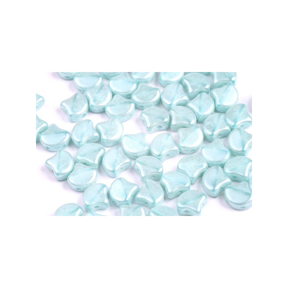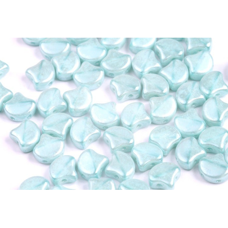 Skleněné mačkané korálky Ginko 7,5 x 7,5 mm SILK BLUE OPAL WHITE LUSTER 61300/14400