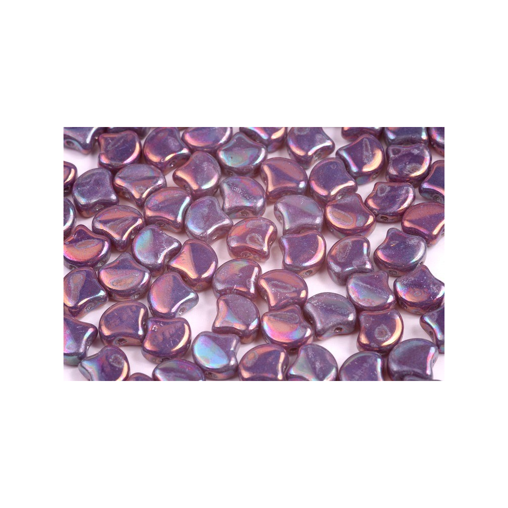 Povrchová úprava Iris Luster na mléčném opalizujícím základu vytváří na povrchu korálku fascinující hru barev s fialovými a perleťovými odlesky. Velikost 7,5 x 7,5 mm je ideální pro šité šperky, kde korálky do sebe perfektně zapadají a tvoří souvislou plochu připomínající rybí šupiny nebo vějířky. Díky své tloušťce a zaobleným hranám jsou korálky Matubo Ginko velmi příjemné na kůži a dodávají šperku profesionální, luxusní vzhled.