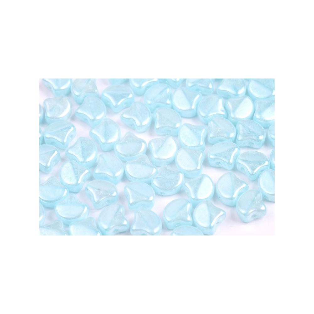 Skleněné mačkané korálky Ginko 7,5 x 7,5 mm OPAL AQUA WHITE LUSTER 61000/14400