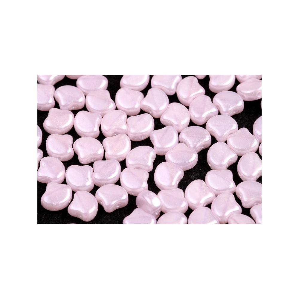 Skleněné mačkané korálky Ginko 7,5 x 7,5 mm OPAL PINK WHITE LUSTER 71200/14400