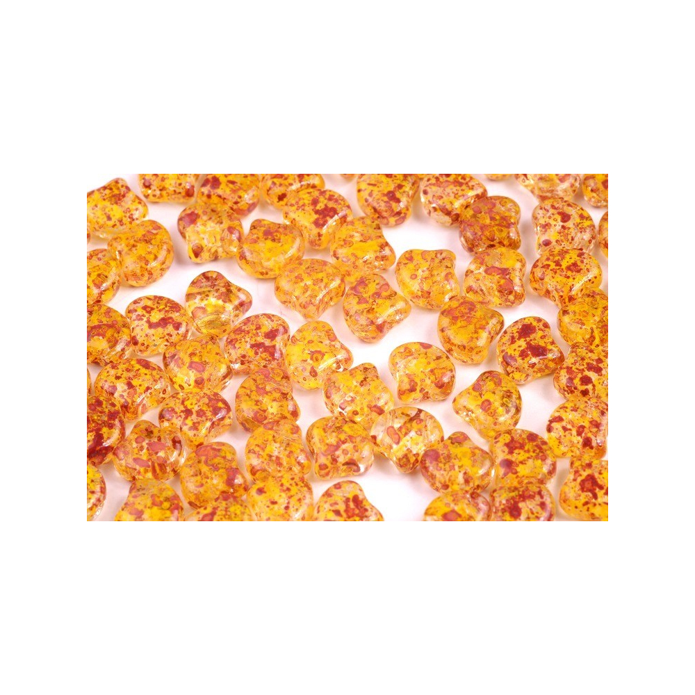 Skleněné mačkané korálky Ginko 7,5 x 7,5 mm CONFETTI SPLASH RED YELLOW 00030/24403