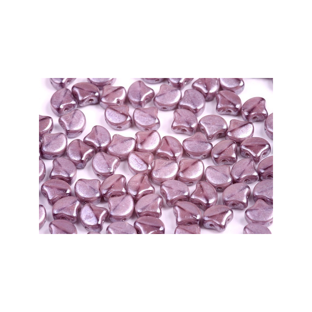 Skleněné mačkané korálky Ginko 7,5 x 7,5 mm OPAL VIOLET WHITE LUSTER 21010/14400