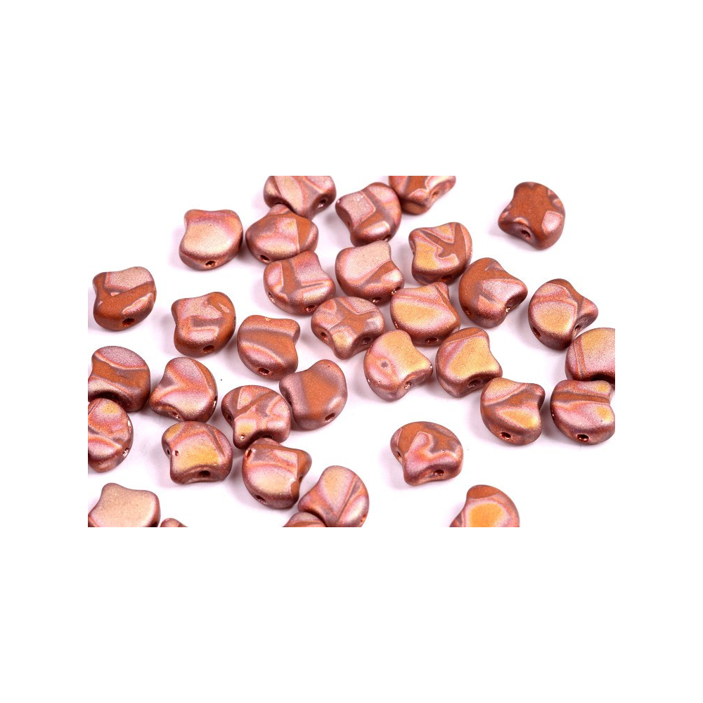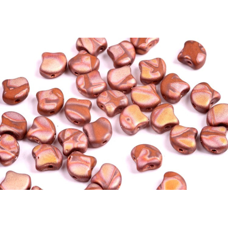 Skleněné mačkané korálky Ginko 7,5 x 7,5 mm OPAQUE CHOCOLATE FULL CAPRI GOLD MAT BATIK 13600/27173BA