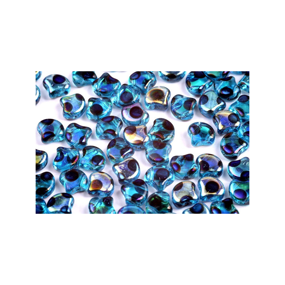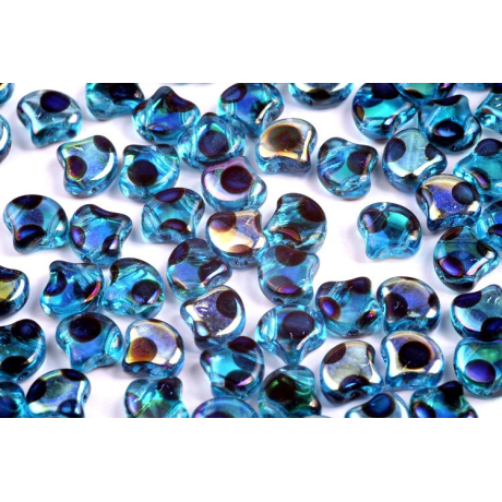 Skleněné mačkané korálky Ginko 7,5 x 7,5 mm AQUAMARINE AB FULL AZURO DOT 60020/27894DO