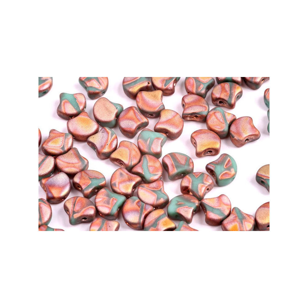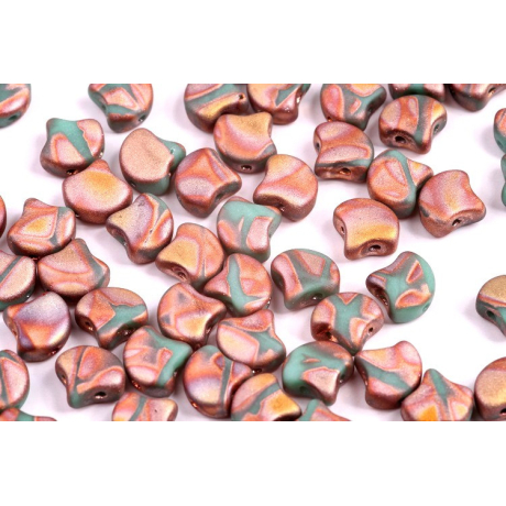 Skleněné mačkané korálky Ginko 7,5 x 7,5 mm IONIC TURQUOISE GREEN/BROWN 02010-24614 Velikost: 7,5...