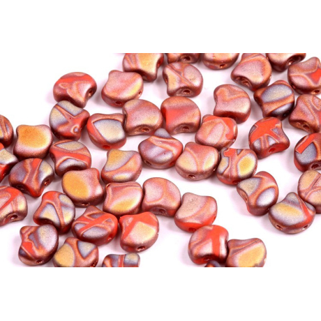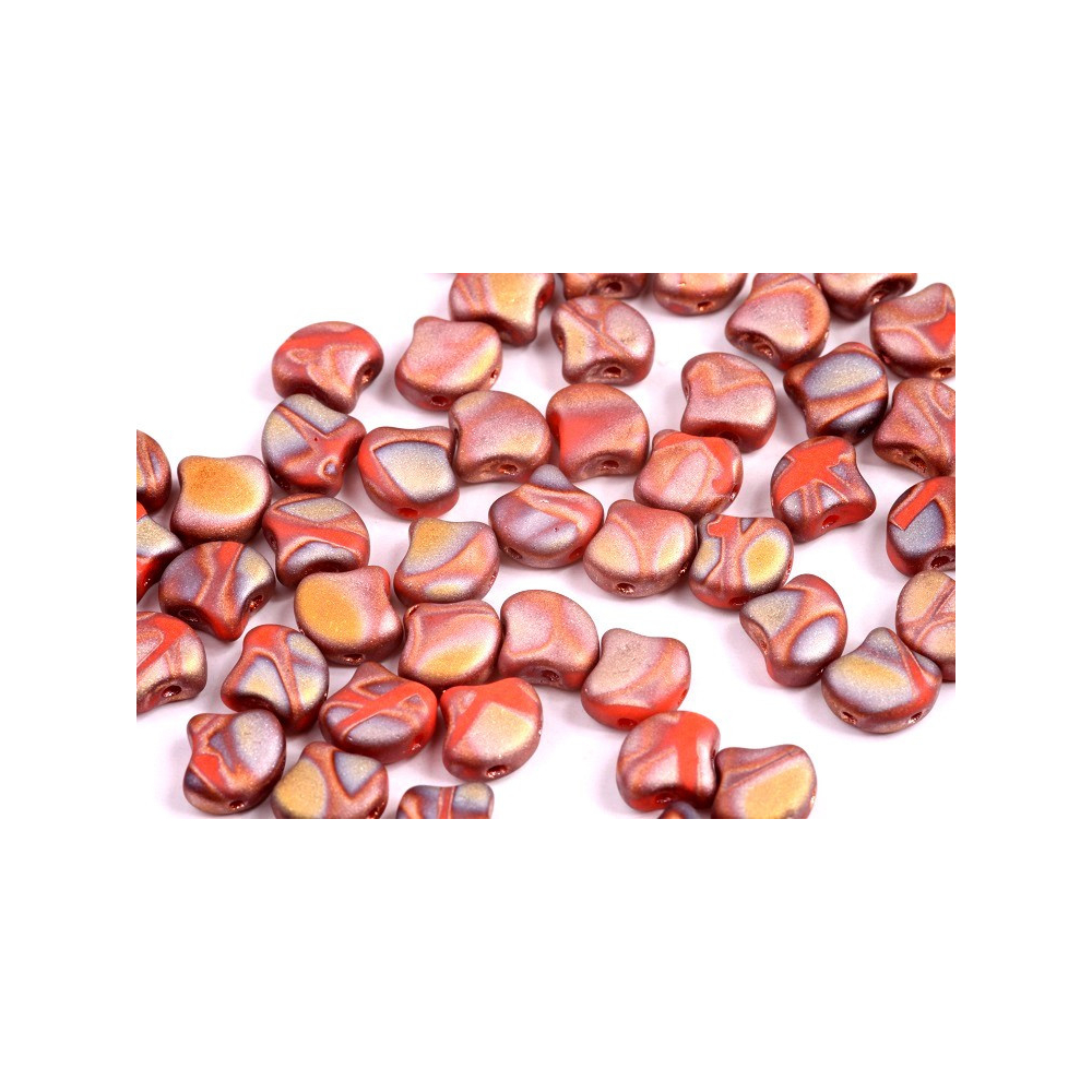 Skleněné mačkané korálky Ginko 7,5 x 7,5 mm OPAQUE ORANGE FULL CAPRI GOLD MAT BATIK 93140/27173BA