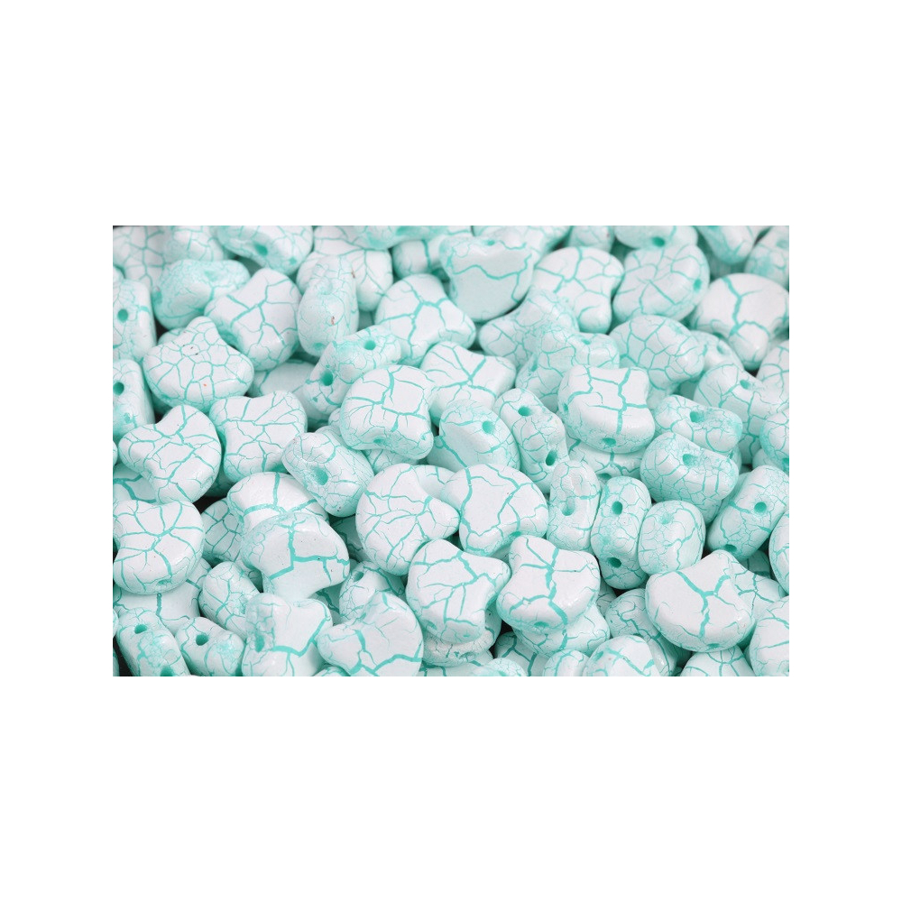 Skleněné mačkané korálky Ginko 7,5 x 7,5 mm IONIC WHITE/GREEN 02010-24605