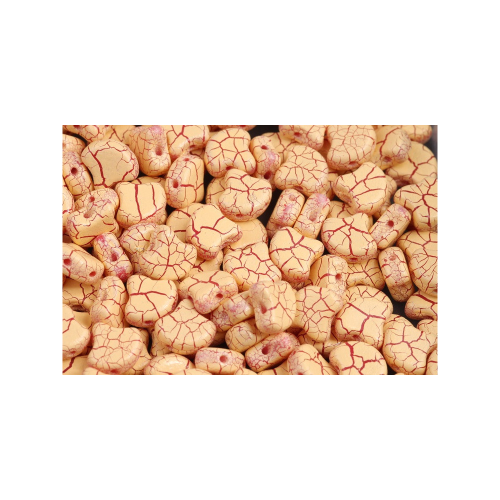 Díky preciznímu provedení a dvěma dírkám jsou dvoudírkové korálky Ginko ideální volbou pro výrobu šperků náročných na detail, jako jsou složité prošívané náhrdelníky nebo masivnější náramky. Povrchová úprava s tmavě červeným žilkováním na žlutém podkladu dodává korálkům přírodní, lehce vintage vzhled, který skvěle doplní další mačkané korálky z vaší sbírky.