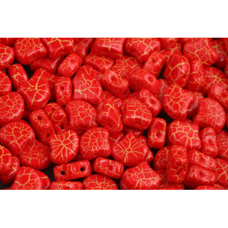 Skleněné mačkané korálky Ginko 7,5 x 7,5 mm IONIC RED/YELLOW 02010-24609
