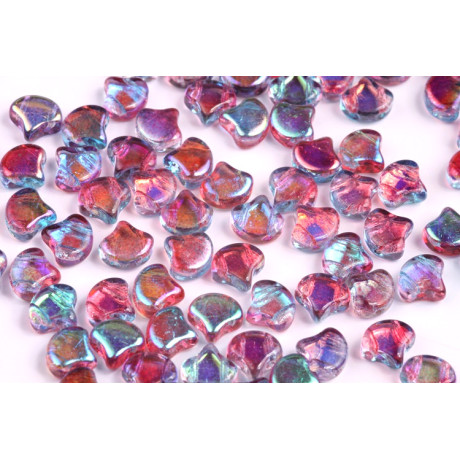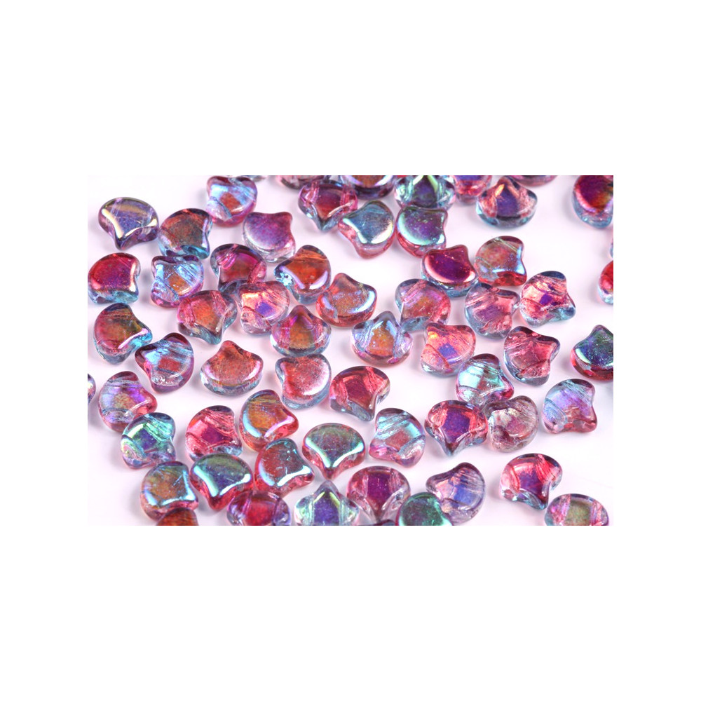 Skleněné mačkané korálky Ginko 7,5 x 7,5 mm AQUAMARINE RED LUSTER 60020/14495 Velikost: 7,5 x 7,5...