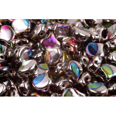 Šitý šperk získá s touto metalickou barvou s duhovým nádechem luxusní charakter, který v pohybu mění barvy od modré po fialovou a zelenou. Při tvorbě je doporučujeme kombinovat s rokajlem Preciosa velikosti 8/0 nebo 10/0, které dokonale vyplní mezery mezi jednotlivými lístky a vytvoří plynulý přechod. Stříbrný základ s efektem Big Dot skvěle vynikne v nápadných náhrdelnících i decentních náušnicích.
