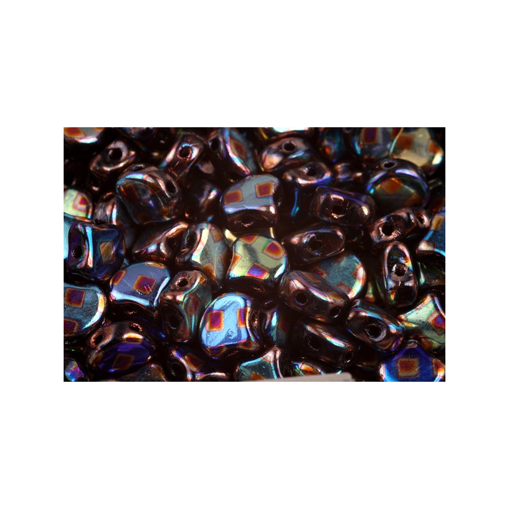 JET SUMMER RAINBOW CUBE povrchová úprava na dvoudírkových korálcích Matubo™ Ginko představuje technologický vrchol v dekorování skla, kde tmavý základ typu Jet doplňují iridiscentní čtvercové odlesky. S přesnými rozměry 7,5 x 7,5 mm a dvěma souběžnými otvory o průměru 0,8 mm umožňují tyto korálky plynulé navlékání a zajišťují tvarovou stabilitu i v prostorově náročných šitých špercích. Materiál ze skloviny Preciosa Ornela zaručuje špičkovou odolnost, přičemž balení obsahuje přibližně 20 kusů (počet je orientační a závisí na hmotnosti konkrétní šarže).